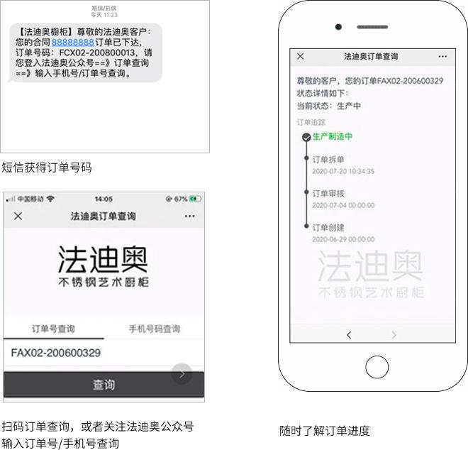 每一個真實訂單,消費者均可在法迪奧【線上訂單查詢】系統,通過下單時的訂單號和電話號碼,查到產品在廠生產進度。